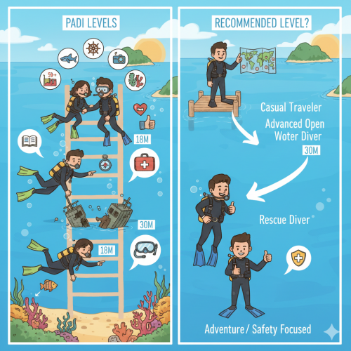 การเรียนในระดับนี้ทำให้ PADI License ไม่ได้เป็นเพียงบัตรดำน้ำ แต่เป็นเครื่องมือที่ช่วยยกระดับความมั่นใจและความปลอดภัยในการดำน้ำจริง